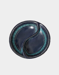 Kenyan artisans pair a deep purple shade with light blue etched waves to create this lovely hand carved soapstone dish. Two compartments are joined together by a curved divider, offering a beautiful place to keep small trinkets or jewelry. Place this dish on your dressing table and keep small mementos in it for easy access or place small flowers on this decorative dish to honor your fallen loved ones.