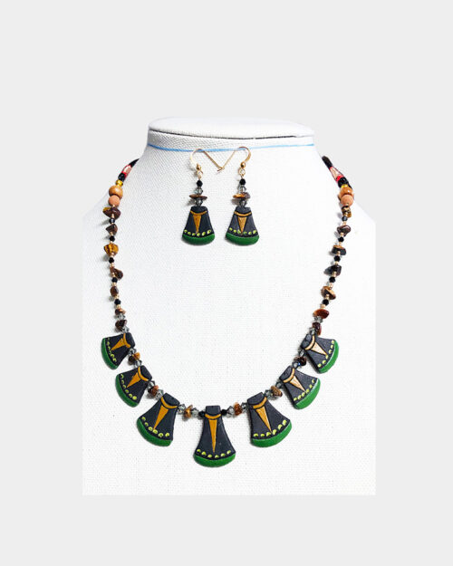Terracotta Jewelry in India Derived from an Italian word, which means “baked earth”, terracotta (Latin terra cocta) justifies its meaning very well. Handcrafting is one of the oldest human activities next in importance to agriculture. Indian handicrafts can be traced to great antiquity. The country had forged ahead and made great strides in pushing the handicrafts into the world market. Indian Art represents that special chapter in World Art that expounds man’s search for truth, through the visual medium. Crafting terracotta jewelry is one such handicraft art that has become important in recent times. Inspired from mythology, traditional motifs, geometrical patterns and God’s greatest gift NATURE, India has now become one of the leading countries manufacturing high quality and fine finish terracotta jewelry. The jewelries are made by baking the clay at a very high temperature and then artistically carved by craftsmen which are the most labor oriented part in the whole manufacturing process. Inspired by nature, the themes of these terracotta jewelries are generally folk. Traditional and contemporary designs are also available to cater to every age group. This Indian hand crafted jewelry is therefore an example of eco-awareness thus maintaining both its aesthetic and functional value.