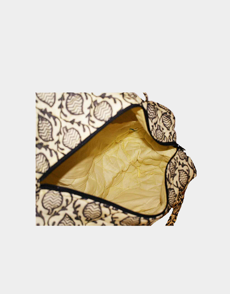 This duffel bag is sure to meet all your daily storage needs. This soft cotton printed duffel bag is perfect for any traveler with small kids. The bag has a single zippered main compartment. This handmade duffel bag from India is durable and washable.