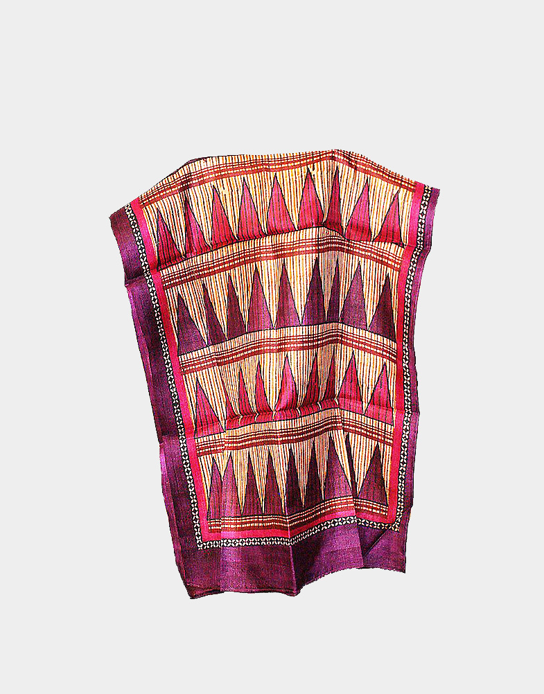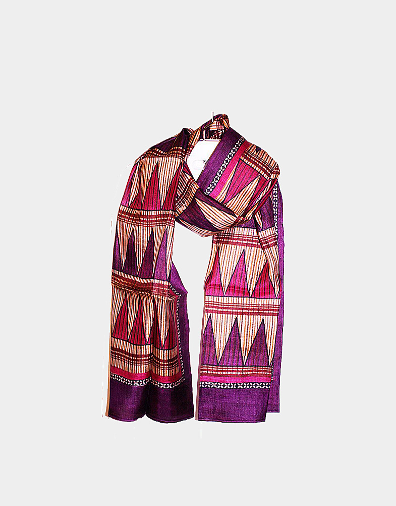 Customized block printed silk scarf with geometrical pattern.