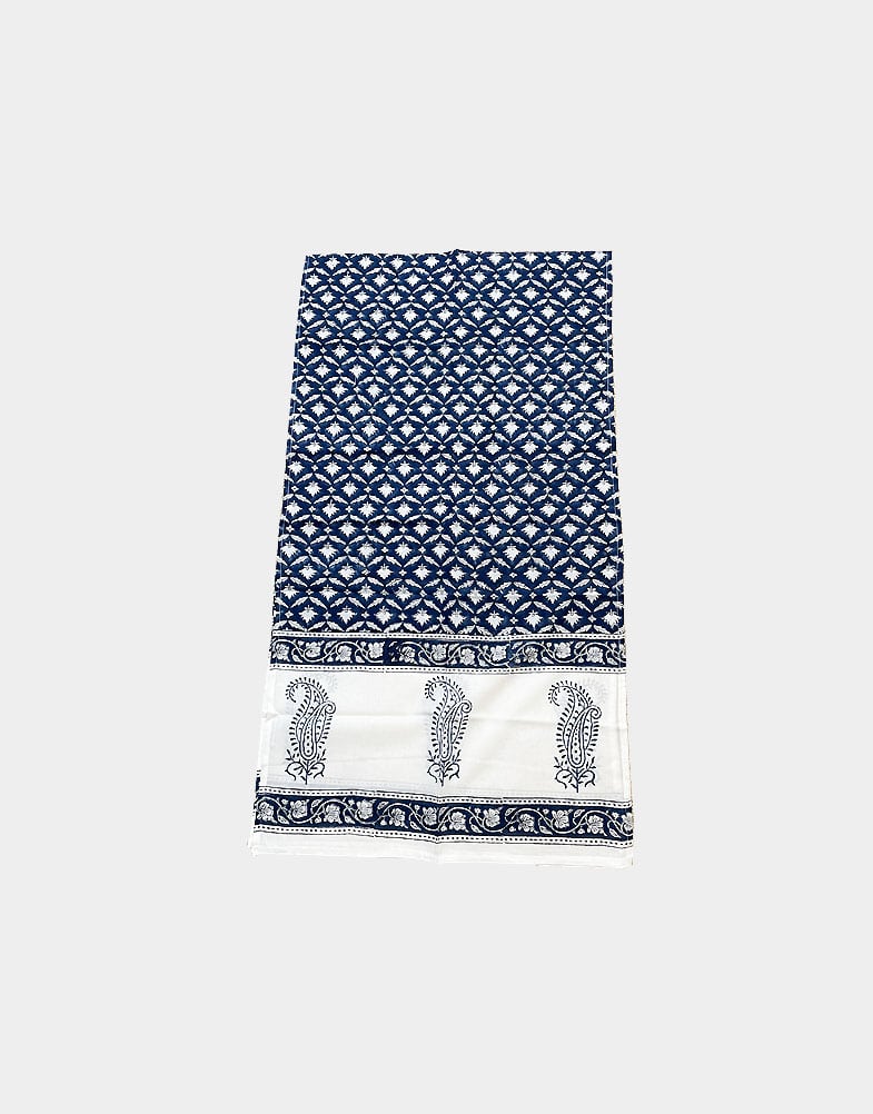 Elegant navy blue block printed cotton scarf
