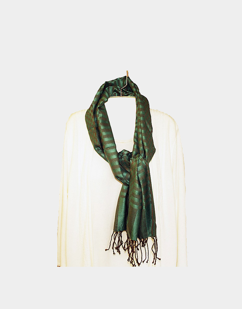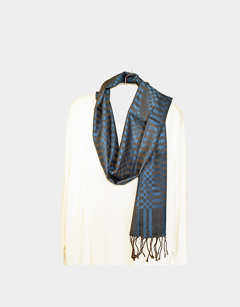 Tejas sapphire blue, forest green and chocolate brown scarves are woven in a rich basket weave design, using cotton and viscose yarn. This fair trade scarf is the perfect weight for fall, and is a unisex style.