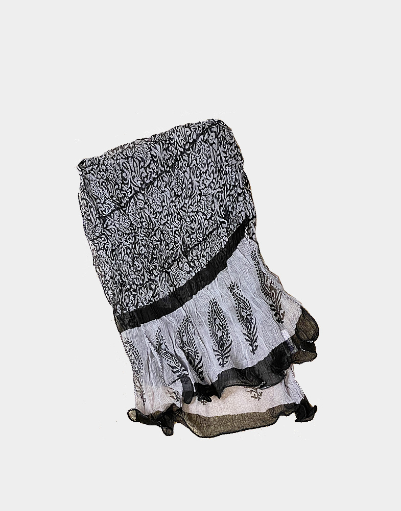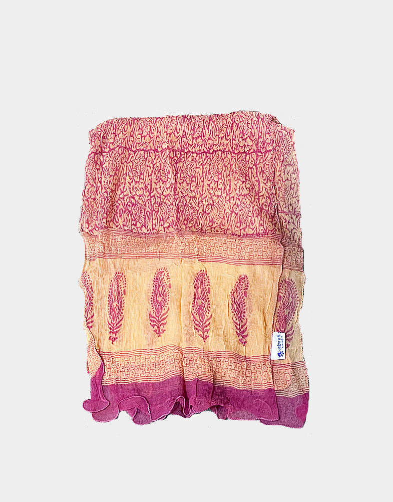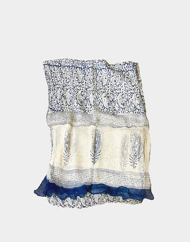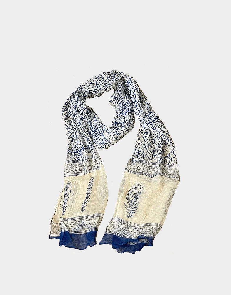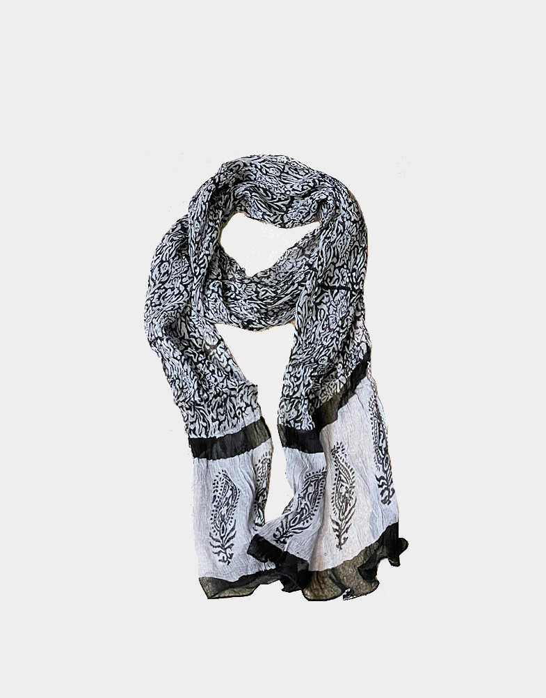 These Fair trade Peach, black and blue chiffon scarves are hand block printed on viscose chiffon. One of the scarves shows the soft peach and magenta hues of the block print design blend beautifully with this scarf’s light airy texture. The other one shows block printed motif in soft blue and cream colors create a beautiful and classic look. The last one shows the block-print motif in black brings a contemporary look to a very classic style.