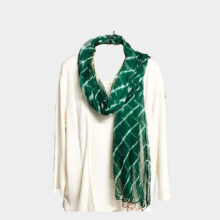 These gorgeous tie and dye fair trade lightweight georgette scarves are made by women artisans in Western India who are skilled in very fine hand tie-dye (Bandhani) on georgette fabric. This Tie Dye Scarves are hand tie dyed on soft feather-light georgette material by artisans in Rajasthan, India. These lightweight soft scarves features a beautiful tie dye pattern in multi-color shades. All scarves has bead work on both ends.