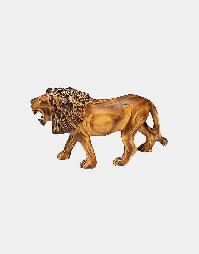 Talented Kenyan carvers carve this beautiful lion sculpture from jacaranda wood, finished with burned contours. Because these sculptures are fully handmade, each lion exhibits its own characteristics.