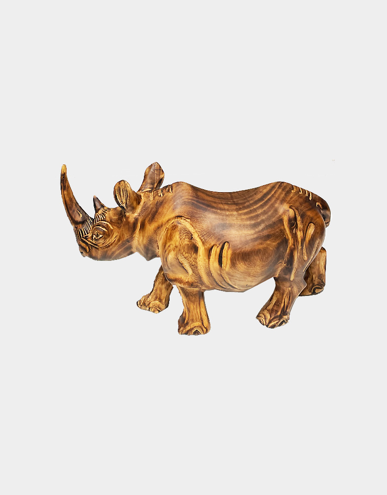 Talented Kenyan carvers carve this beautiful rhino sculpture from jacaranda wood, finished with burned contours. Because these sculptures are fully handmade, each rhino exhibits its own characteristics.