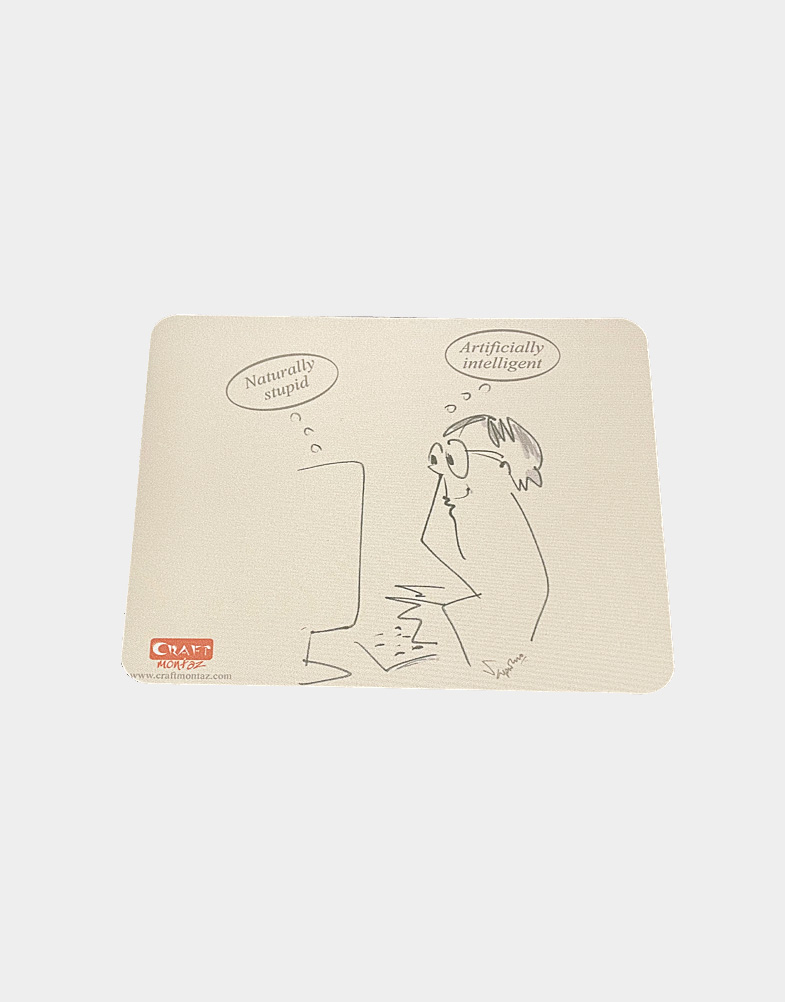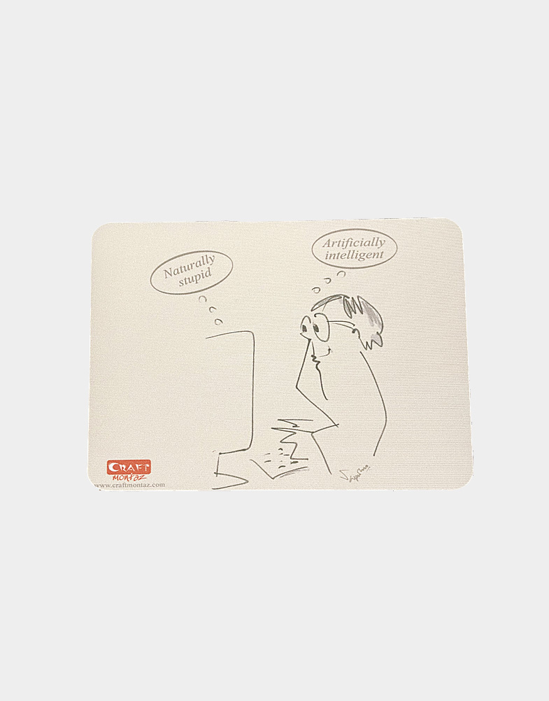 Enjoy this unique beige colored mouse pad with a cartoon on artificial intelligence (AI) by Suparno. This is an original product by Craft Montaz.
