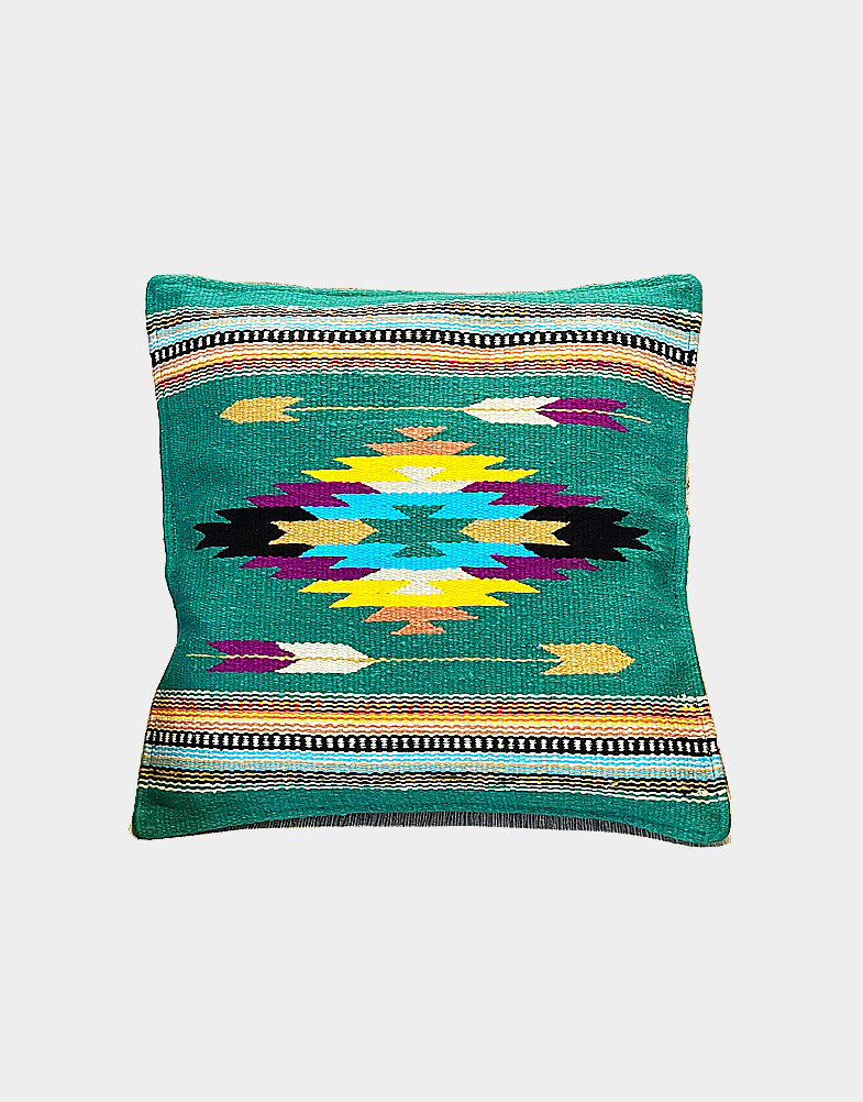 These multicolor vibrant shades beautiful wool Maya pillow or cushion covers are handcrafted and handwoven from southwest Mexico. The back side is black cotton fabric with velcro close.