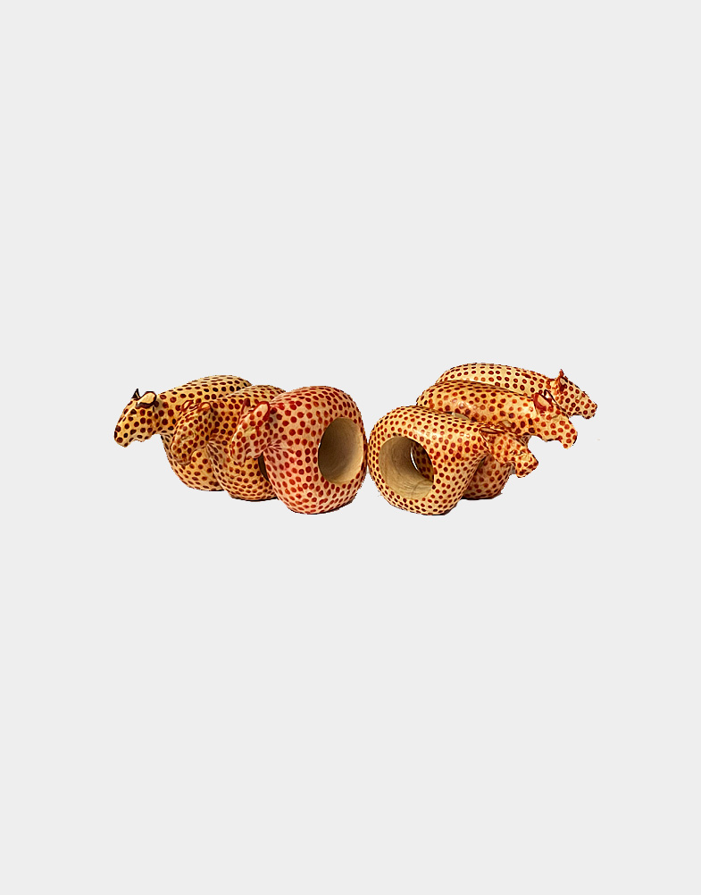 This set of six napkin rings is carved from African Mahogany, using simple tools and traditional techniques Kenyan artisans. Add a unique look to your dinner table with this set of six handmade safari animal cheetah napkin rings.