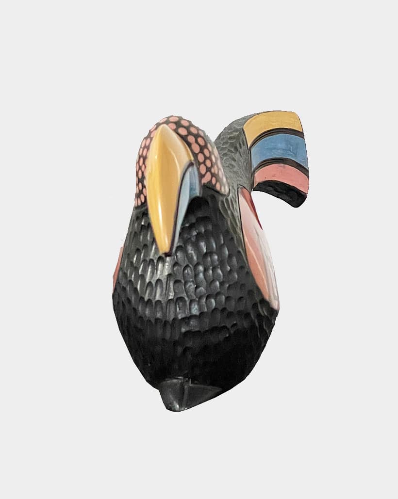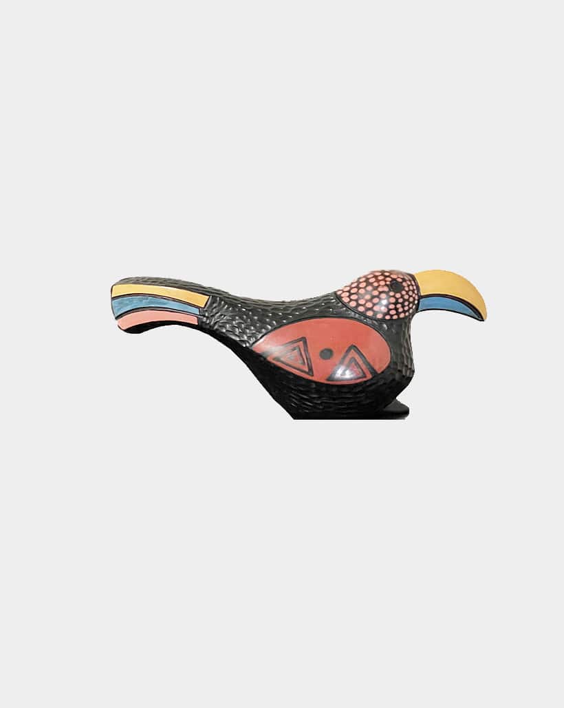 This beautiful pottery animal art is made by artisan from Peru, fully handcrafted and painted in yellow, blue, red and black color. This special pottery is made in Chulucanas town in Peru, famously known as Chulucana Pottery. Signed by the artist Rogger Crisanto.