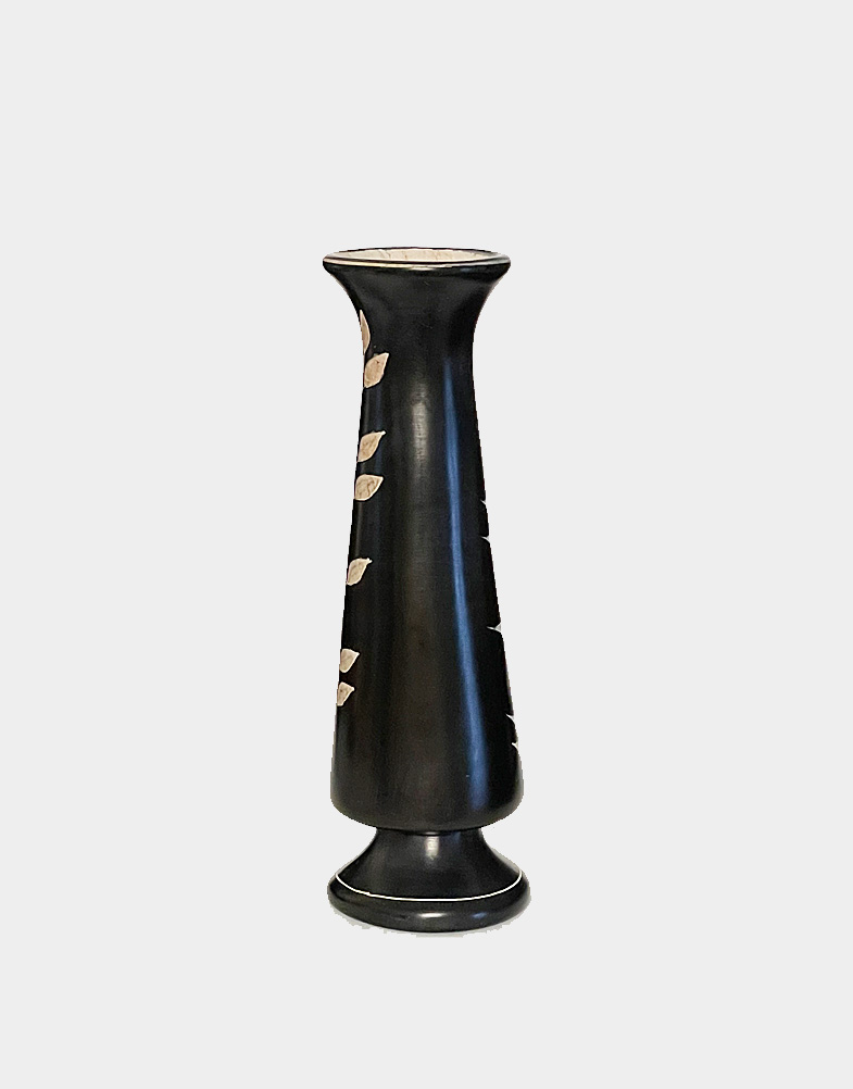 Kenyan artisans hand carve and etch soft soapstone to create a slender decorative vase with a simple bamboo design. A sponge-dyed green finish blankets this unique home decor accessory with earthy color.