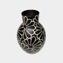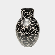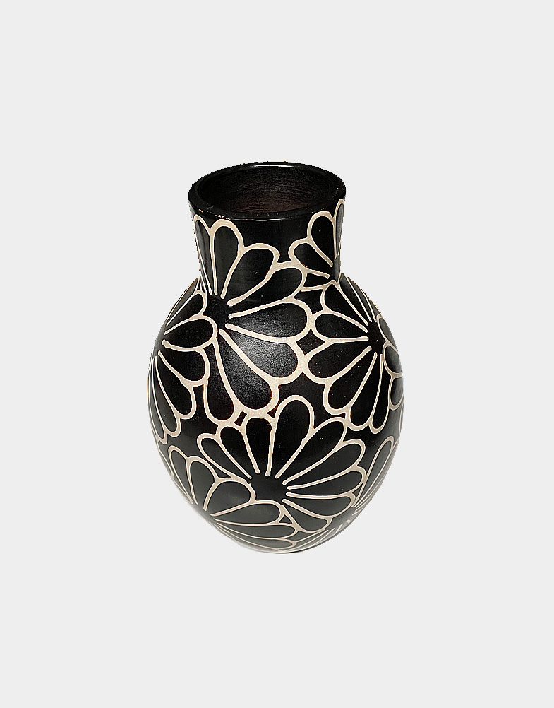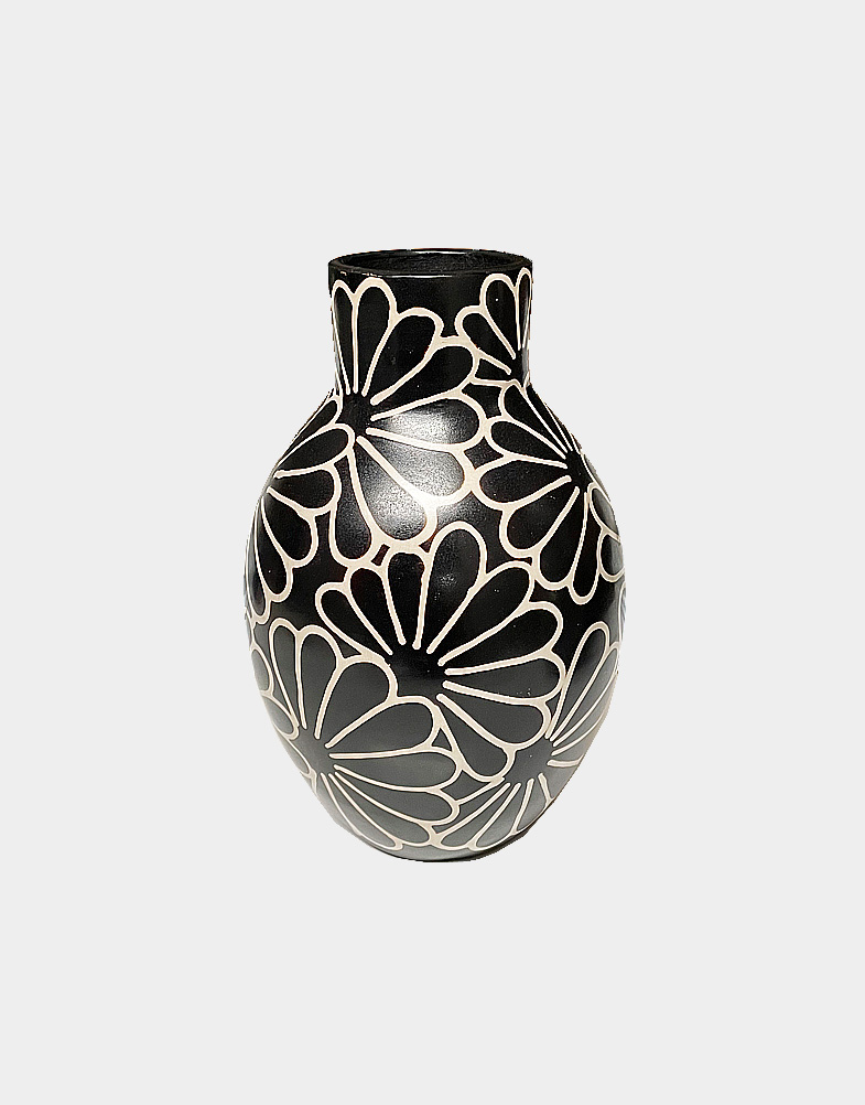This beautiful pottery vase is made by artisan from Peru, fully handcrafted with flower pattern in black and white color. This special pottery is made in Chulucanas town in Peru, famously known as Chulucanas Pottery. Signed by the artist Santodio Paz.