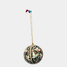 Beautiful hand painted, hand crafted Christmas ornaments made of lighter papier mache easy to hang on trees for decoration. Each ball is painted in different color with shiny flower motif and attached with a golden cord with red tassel at the end. These are one of the most beautiful hand-crafted items made in Kashmir, India.