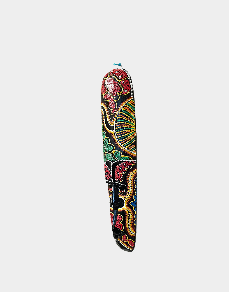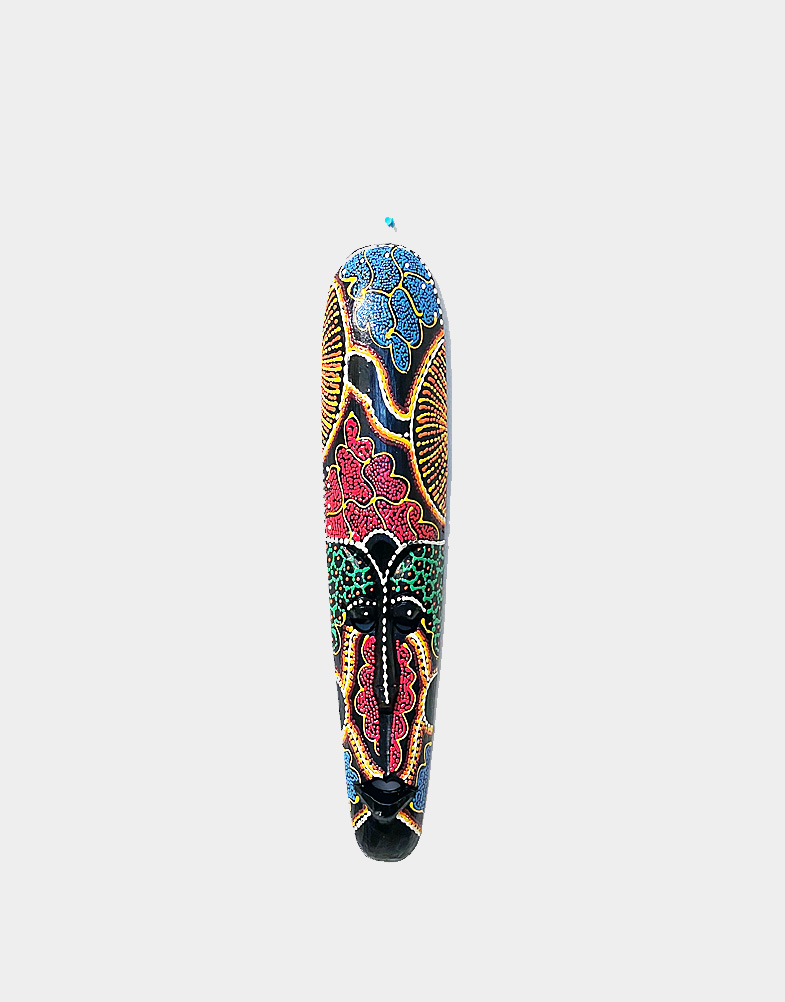 Tribal Aboriginal Art Decor dotted Wood masks from Bali, Indonesia. These masks are hand carved & hand painted on aboriginal wood by Artisans in Indonesia. Ideal for great wall decoration for home, bar, restaurant, office or study. Hand painted By great artisans. Colorful decoration patterns design.