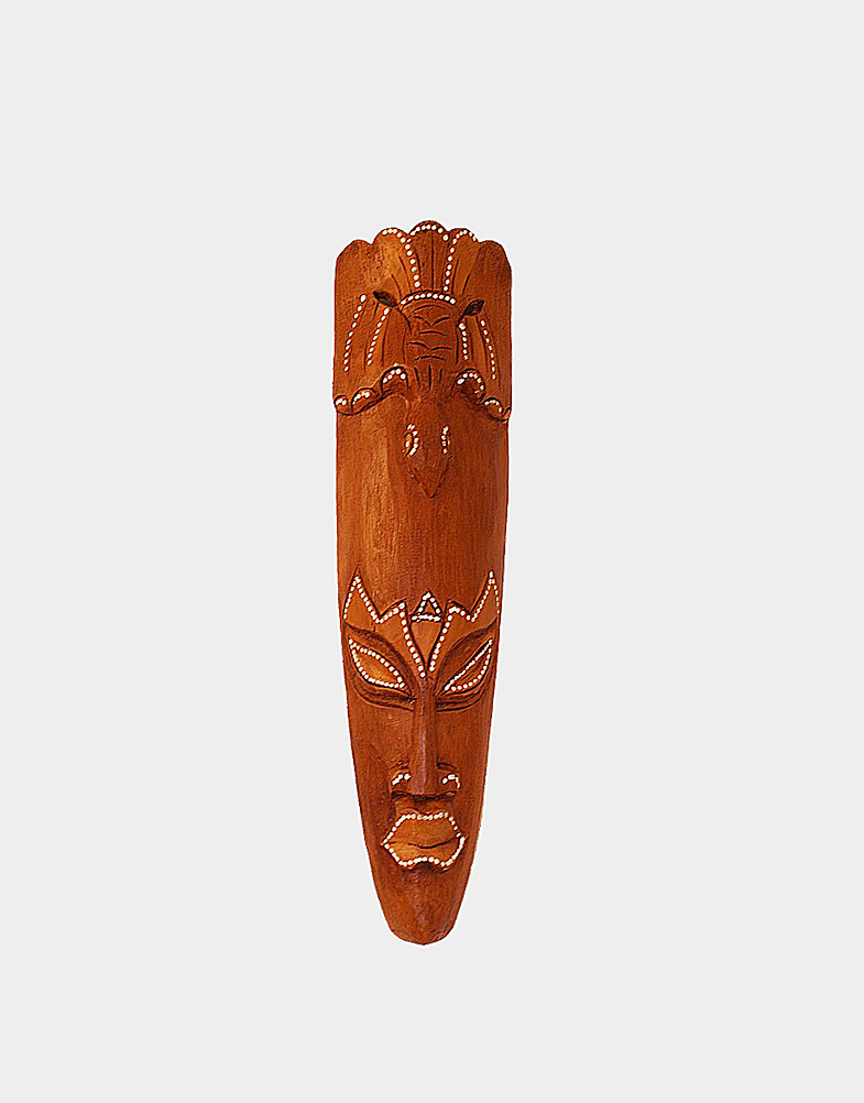 A typical dotted wooden human faced mask from Bali – a true example of wood carving.
