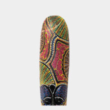 The sacred Aboriginal colors, said to be given to the Aborigines during the Dream time, are Black, Red, Yellow and White. Black represents the earth, marking the campfires of the dream time ancestors. Red represents fire, energy and blood – ‘Djang’, a power found in places of importance to the Aborigines. Dots symbolize stars, sparks, burnt ground etc. as the base of an Aboriginal painting is the organization of the earth and the ancestral connection with it.