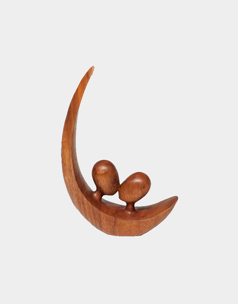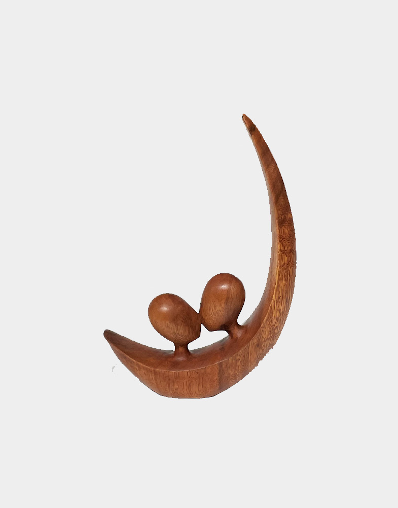 The Balinese artisan hand carves a graceful crescent moon gently cradling a couple who passionately kiss on the lunar surface. Crafted from local Suar wood, the statuette is polished for a beautiful luster. Fly to the moon and back with Nyoman Sudiana’s dreamy, romantic statuette. Signed by the artist; as this is handcrafted, color, size and/or motif may vary slightly, made in Indonesia, perfect decor for bedroom.