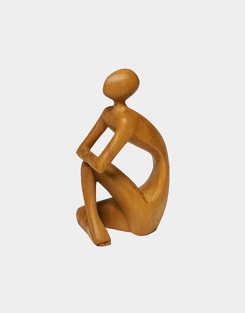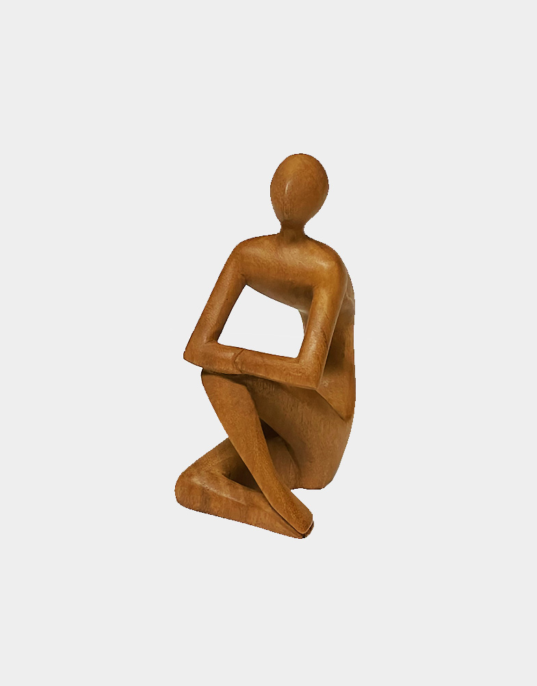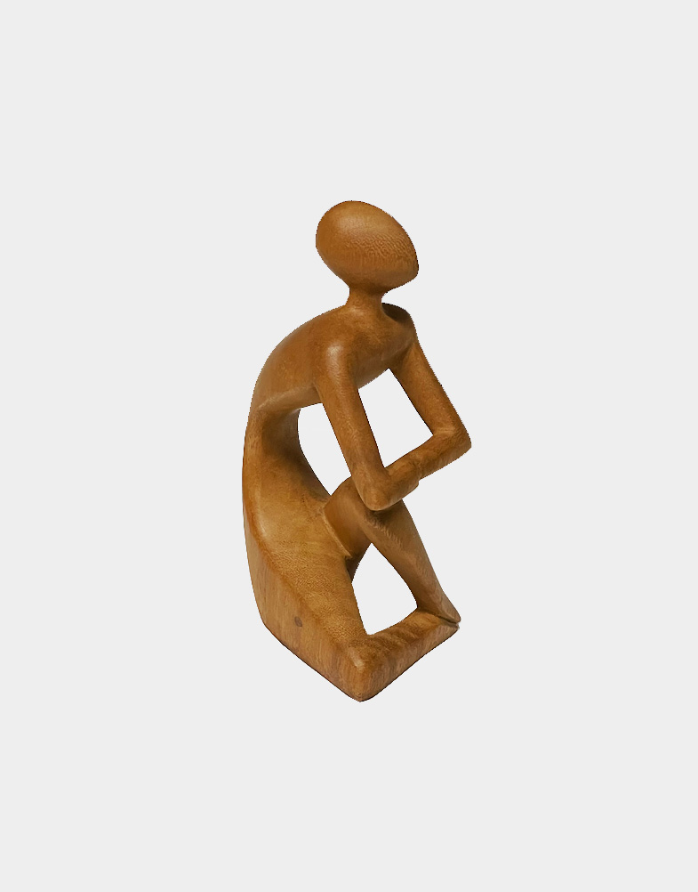The sculpture is nonetheless highly expressive, evidencing Wirata’s mastery as a carver. He selects Suar wood for this sculpture, allowing the natural grain to accentuate his work with organic brilliance. On his own, a man contemplates life, thus inspiring this sculpture by Made Wirata. Signed by the artist, as hand carved with natural wood, grain and color may vary slightly. Made in Indonesia.