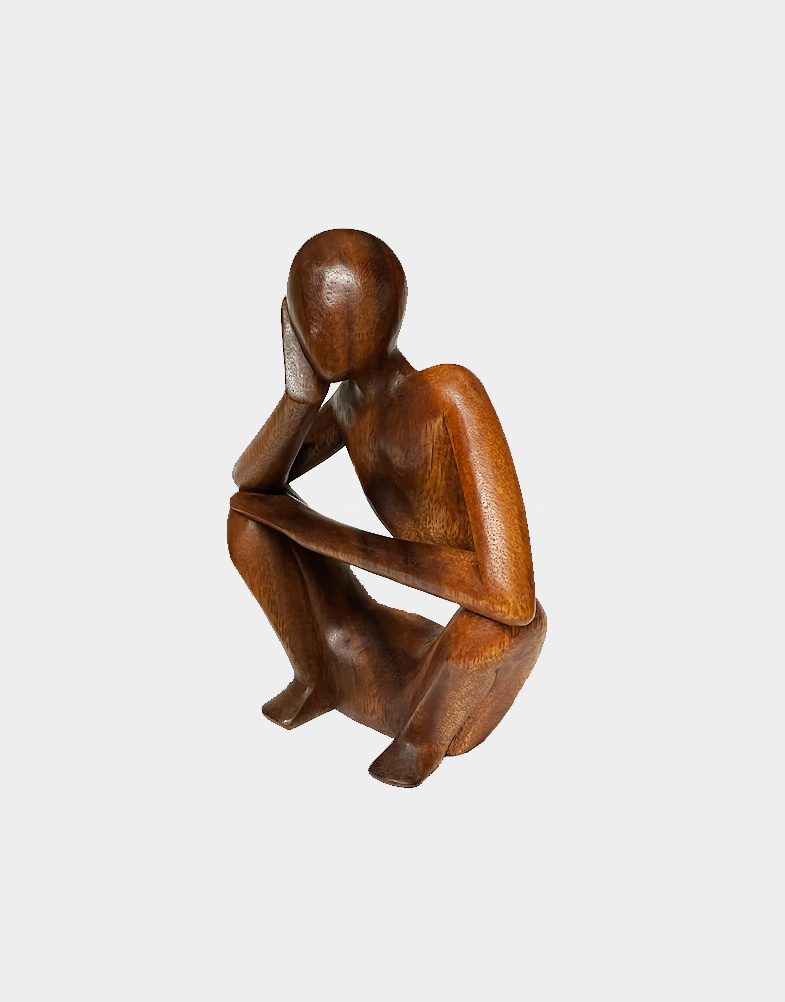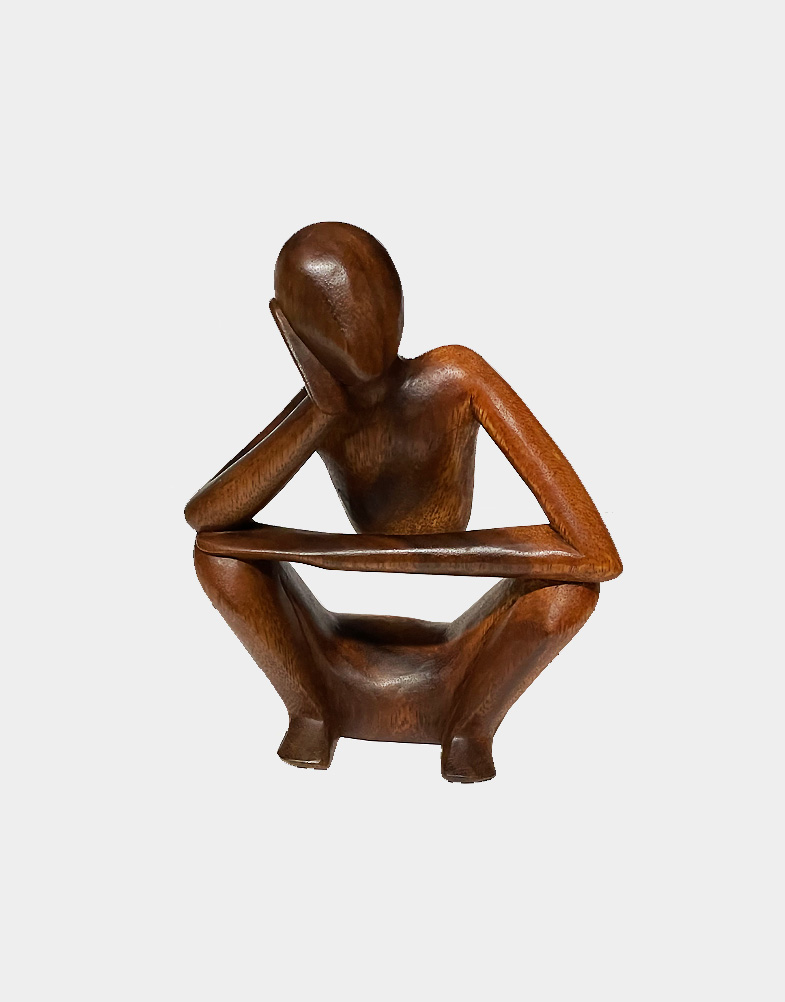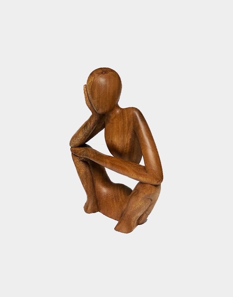 Hand carved from local Suar wood, the abstracted sculpture depicts a person deep in thought or caught up in a lovely daydream. Get lost in a beautiful daydream with this fascinating statuette from Bali’s Wayan Rendah. Signed by the artist, hand-crafted item — color, size and/or motif may vary slightly, made in Indonesia.