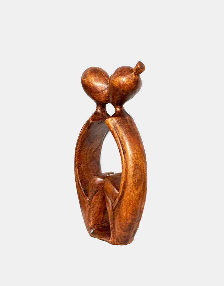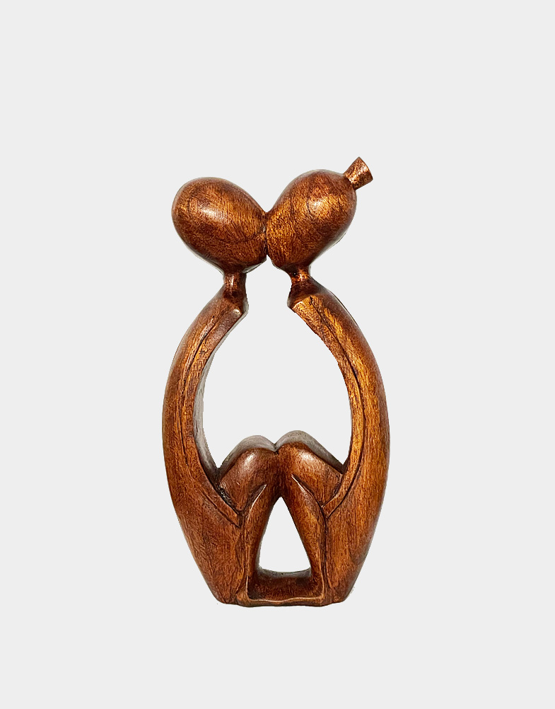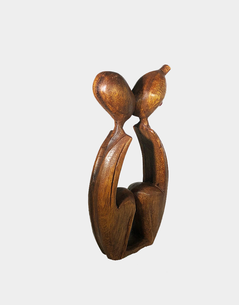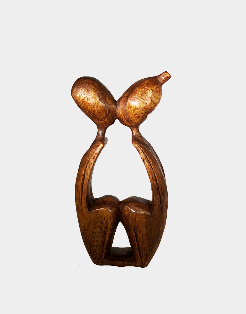 A loving kissing couple wood carving for your bedroom, made in Bali.