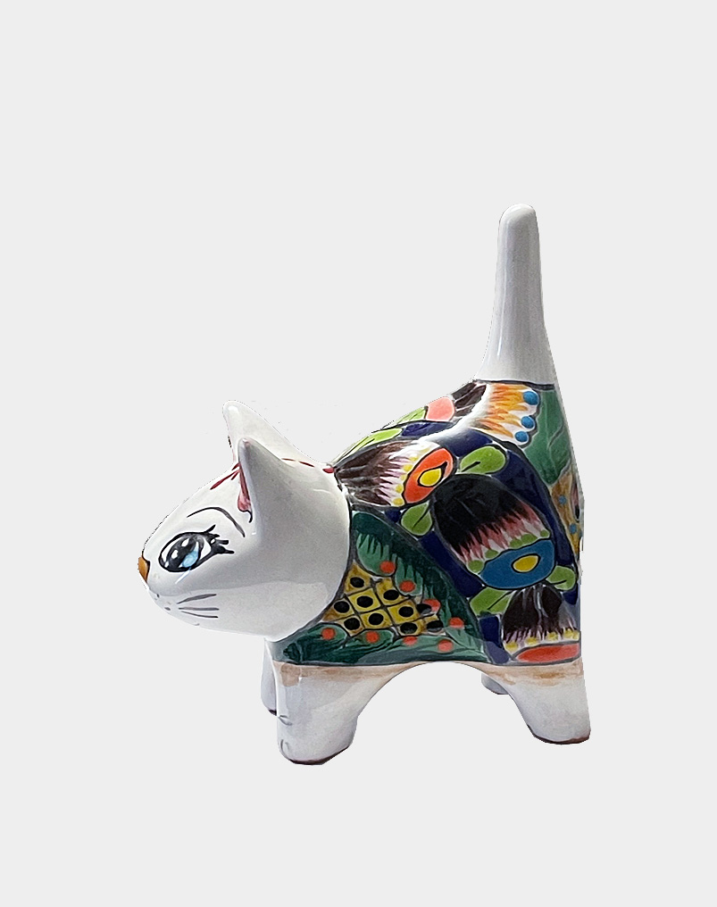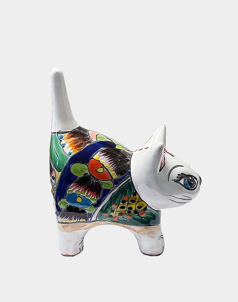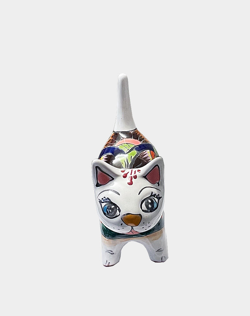 Crafted by Mexican artist on Talavera ceramics with great quality colorful glazed kitten with long tail stand sturdy. Put your rings on the long tail of the white kitten. Great gift idea for the gift exchange, birthday, engagement, and wedding. Leave it with your rings either on the nightstand or dresser to place your rings as you get ready for bed.