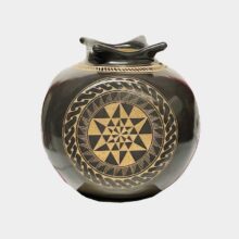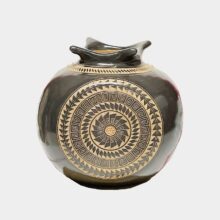 This unique pot is made on wheel first to give it a shape followed by polishing and coloring with pigments mixed from mineral oxides. Then in classic Nicaraguan style, artist Luis meticulously carve symmetrical intricate geometric pattern both in relief and surface etching. The pot has three sides etched with three different relief work. Finally the pot is baked in a wood burning kiln and finally removed and polished. The end result is a truly beautiful creation made all the more special by many hours of labor and love from the hands of gifted and dedicated artisans. Their exceptional artistry has made Nicaraguan pottery celebrated around the world. This is a pure Fair Trade craft from Nicaragua, Central America.