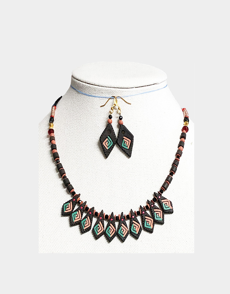 This set will make your outfit come to life with its intricate design and pattern. It is perfect for a day to night look — hassle free! If you’re looking for an earthy super light weight clay jewelry design, and a piece of beautiful wearable art, this is for you.